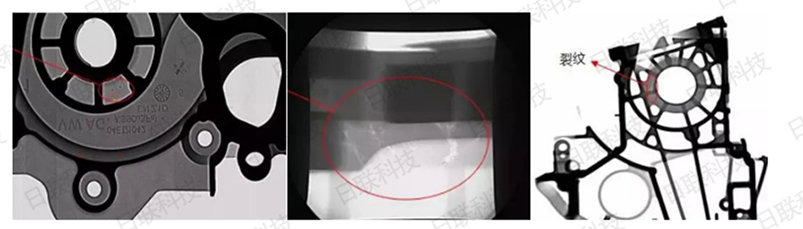 X射线可以对于压铸件常见的内部缺陷进行检测。影响铸件质量的因素很多,原材料控制不严、工艺方案不合理、模具结构设计不合理、生产操作不当等都会使铸件产生各种缺陷,常见缺陷有夹杂、气泡/气孔、疏松和裂纹等。为保证铸件质量及节省成本,在生产流程的早期阶段及时检测出缺陷是很必要的。X射线无损检测由于可避免材料浪费和提高生产效率,成为铸件缺陷检测的**方法。