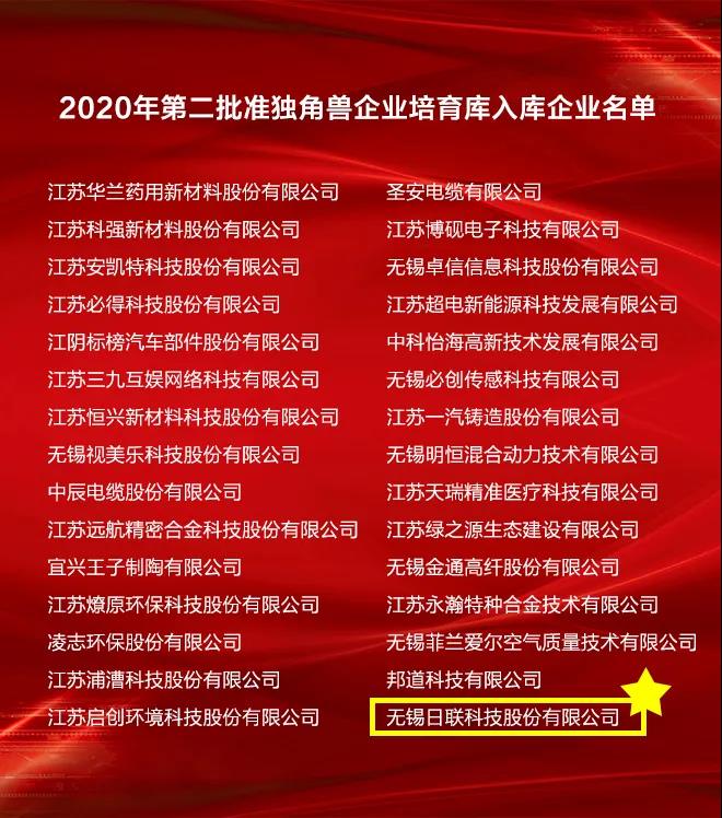无锡高新区新增入库“雏鹰企业”120家、“瞪羚企业”33家、“准独角兽”企业3家,日联科技荣誉在列“准独角兽”企业。